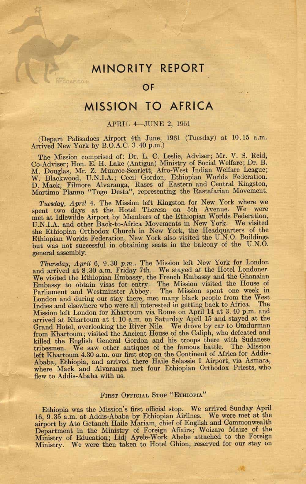3 delegates on the Mission were Rastafarian bredrens:  Filmore Alveranga, Douglas Mack and Mortimer Planno.They wrote the Minority Report of Mission to Africa from page 15 to 23.